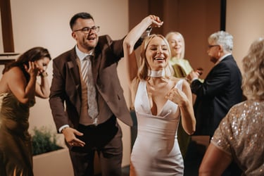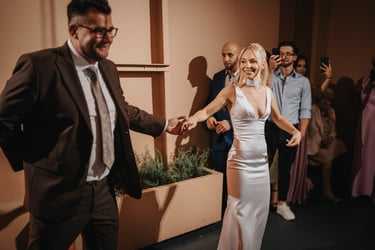 Niestandardowy format łączący swobodę cocktail party z klubowym finałem. Gabrysia i Mariusz postawili na luźną atmosferę, która z czasem nabrała ostrego tempa. Odważna, nowoczesna koncepcja bez sztywnych ram.